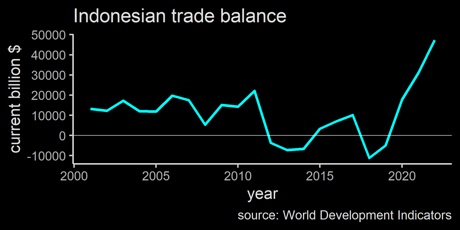 Indonesia generally runs trade surplus where it has more exports than imports.