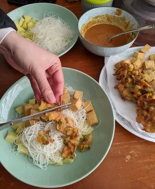 Delicious ketoprak made by my wifeThe picture above is my lunch. My wife made ketoprak today to cure our longing for Indonesian food. I suddenly craved bakwan and my wife brilliantly suggested turning it into ketoprak.