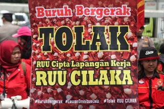 Workers protest in front of the House of Representatives in Central Jakarta against the proposed omnibus bill on job creation on Jan13. (JP/Seto Wardhana)Abstract