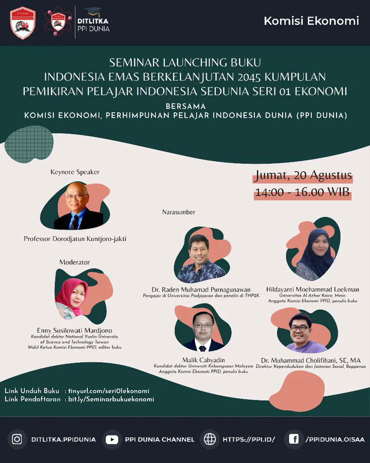 Seminar Launching Buku Indonesia Emas Berkelanjutan 2045 Kumpulan Pemikiran Pelajar Indonesia Sedunia Seri 01 Ekonomi