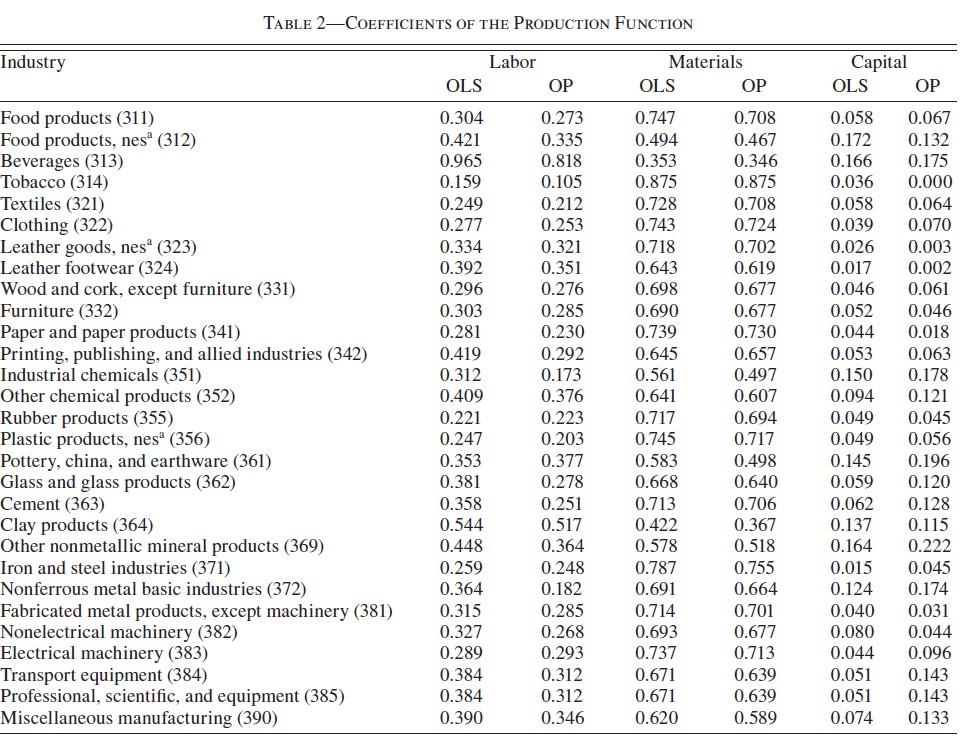 factor intensity in Indonesia (Amiti and Konings 2007 “Trade Liberalization, Intermediate Inputs, and Productivity: Evidence from Indonesia”)