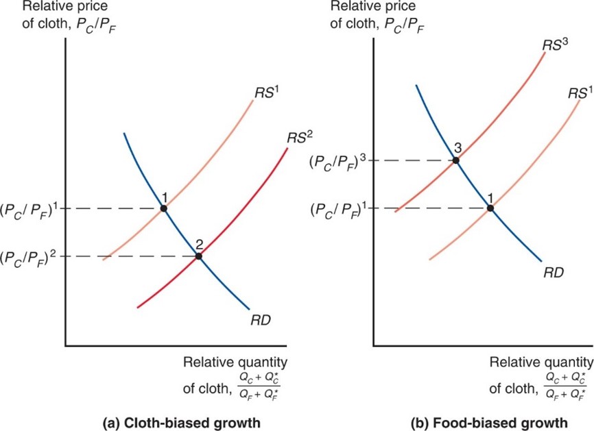 • Biased growth and the resulting change in relative supply causes a change in the terms of trade.