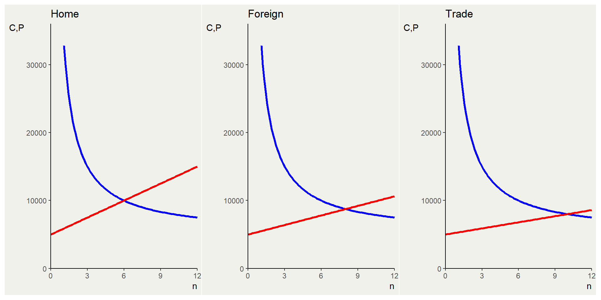 | Home, no trade | Foreign, no trade | Integrated market | |