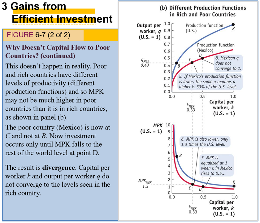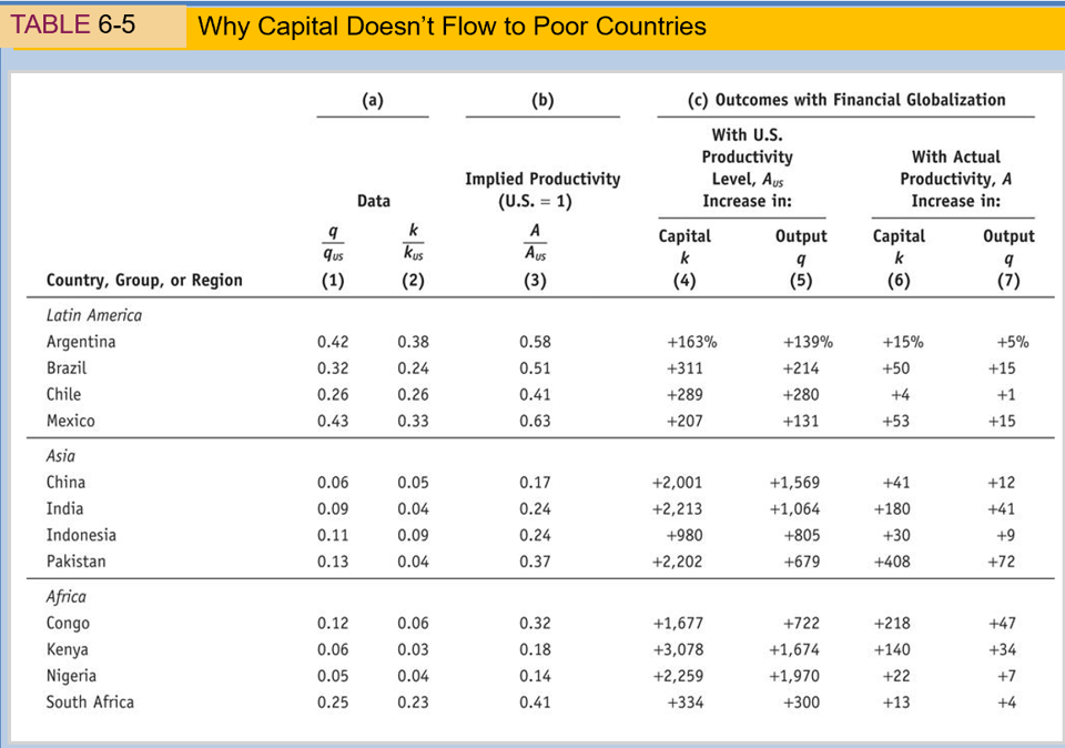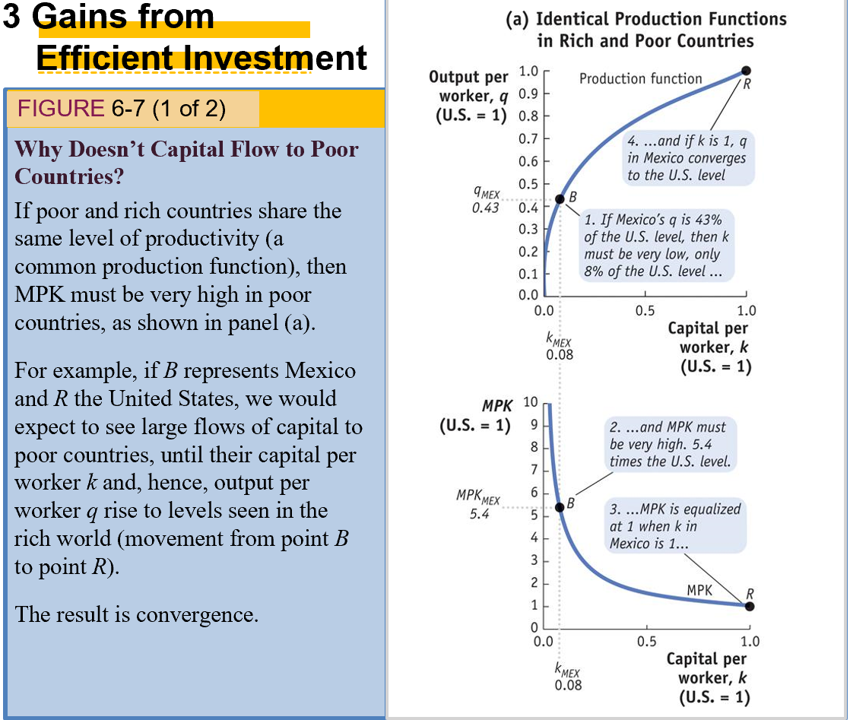 If the world real interest rate is r* and a country has investment projects for which MPK exceeds r*, then the country should borrow to finance those projects. With this in mind, we ask: Why doesn’t more capital flow to poor countries?