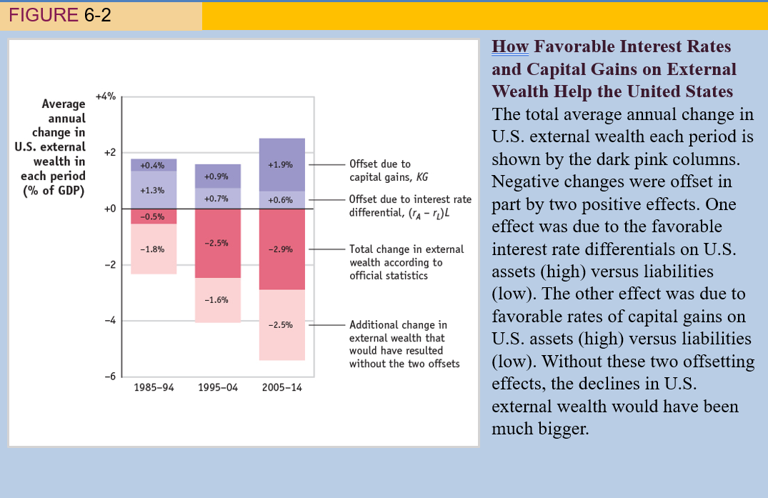 e.g., in the 1960s French officials complained that the US has the “exorbitant privilege” of being able to borrow cheaply while earning higher returns on its foreign investments.