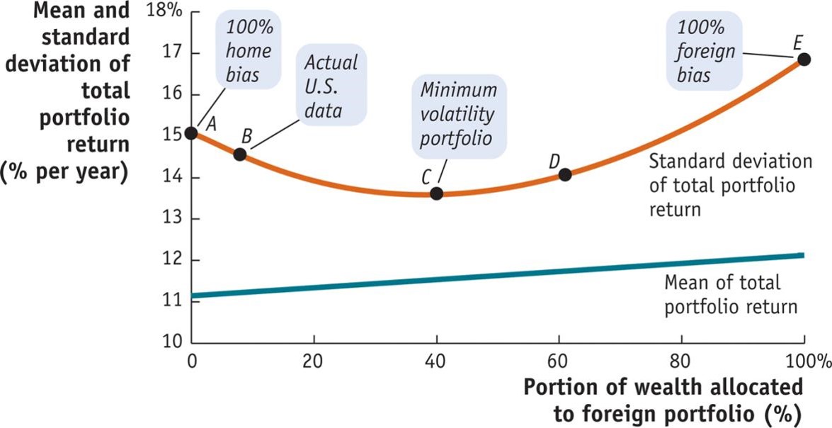 Countries tend to own portfolios that suffer from a strong home bias, a tendency of investors to devote a disproportionate fraction of their wealth to assets from their own home country, when a more globally diversified portfolio might protect them better from risk.
