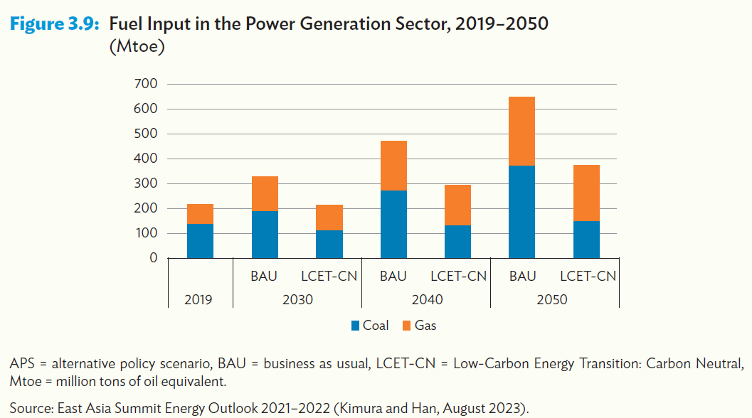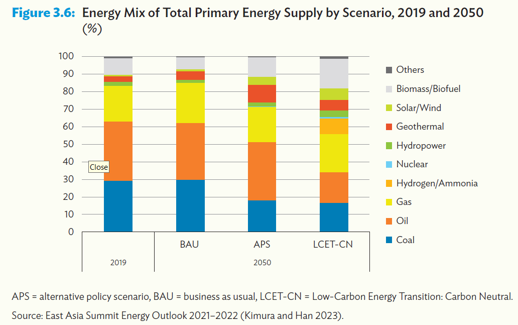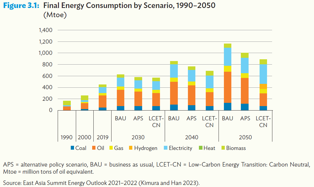 Energy demand in ASEAN is still growing, particularly from high income growth and friendshoring. It is projected that demand will grow to 218% in 2030. Under carbon neutral scenario, this number goes down to only 166%.