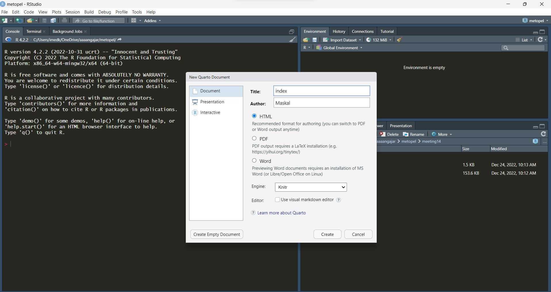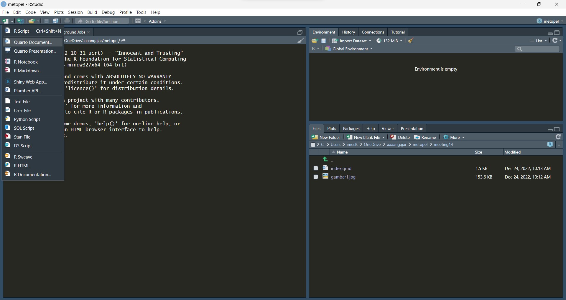 Note bahwa ekstensi Quarto adalah .qmd bukan .r