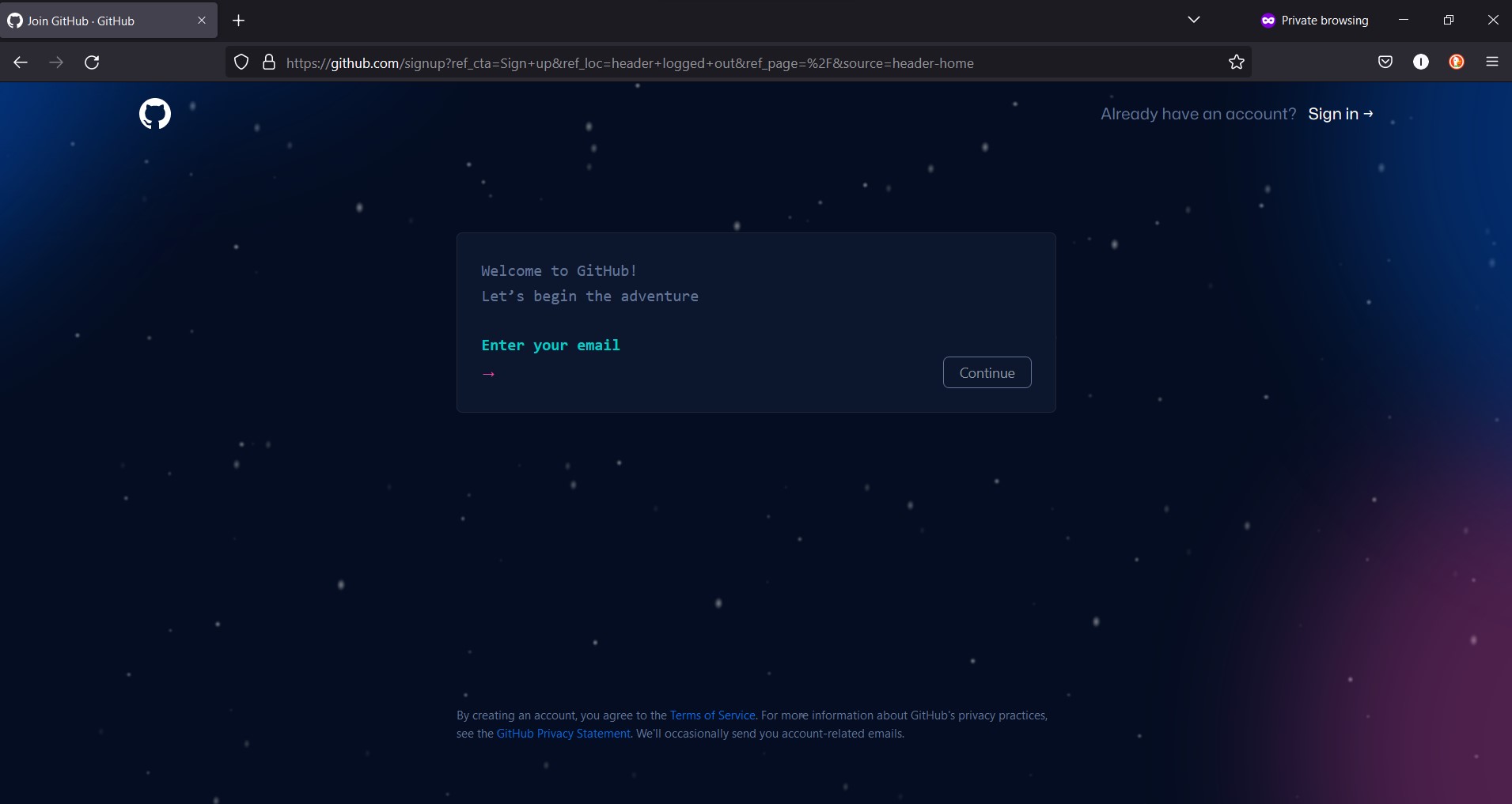 Buka github dan buat akun baru di sini