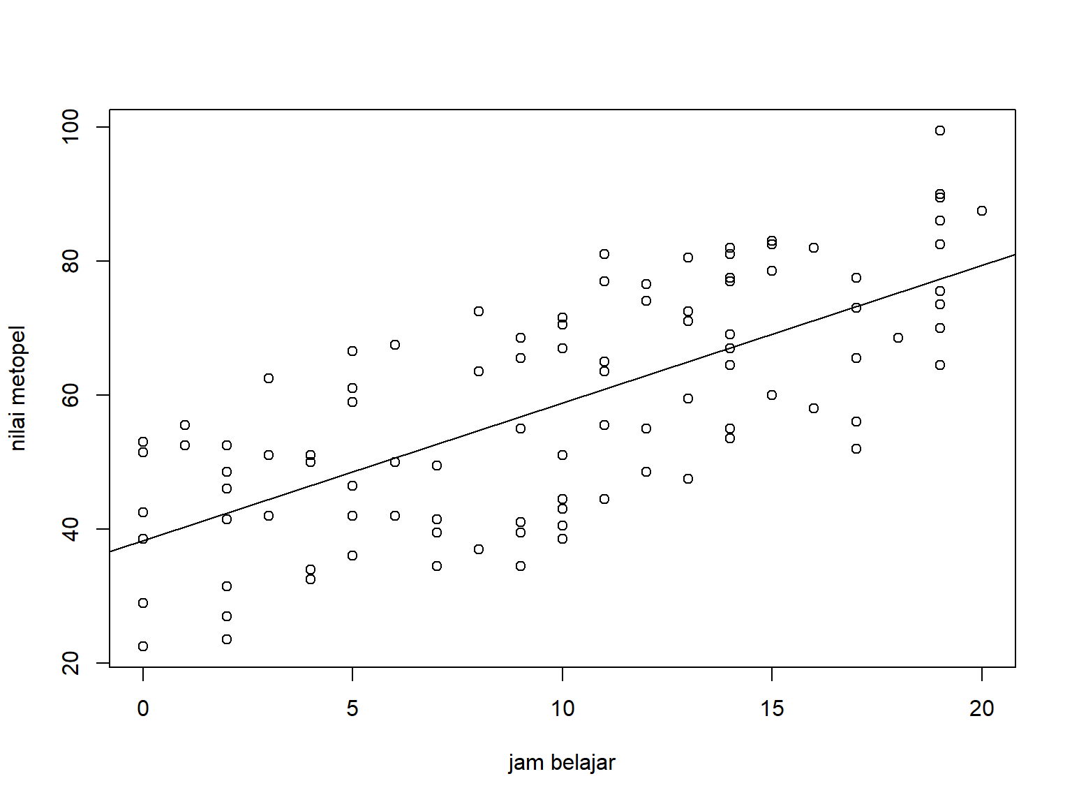 • Nilai UAS Metopel tidak hanya tergantung dari jam belajar per minggu, tapi juga tergantung seberapa paham mahasiswa akan statistik dan matematika.