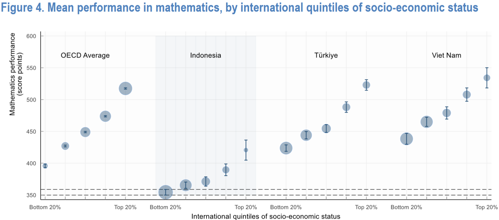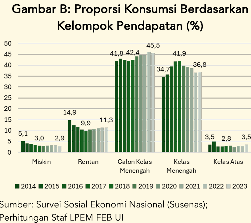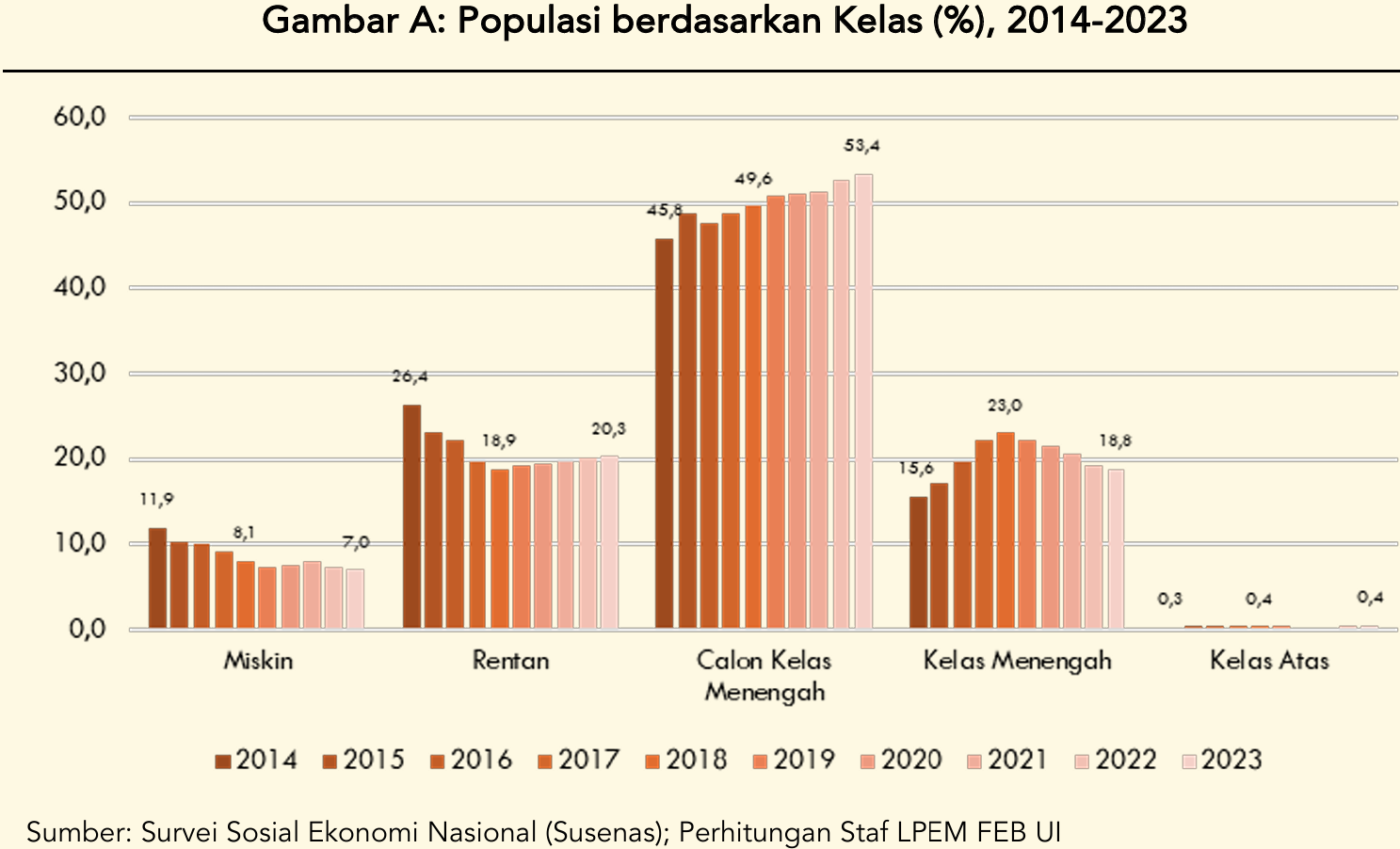 Most Indonesian jobs are of low quality, informal (around 75%), pays lower than middle-class income (also 75%).