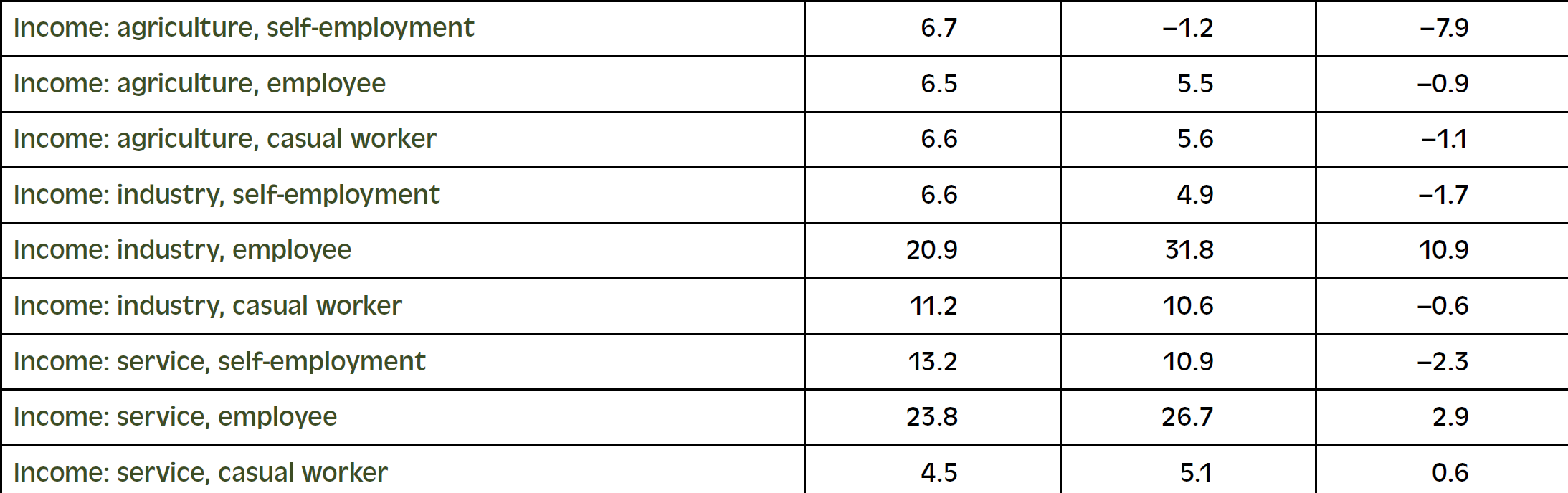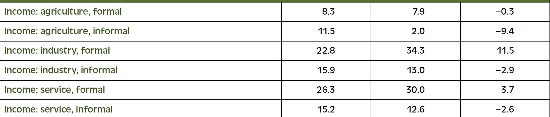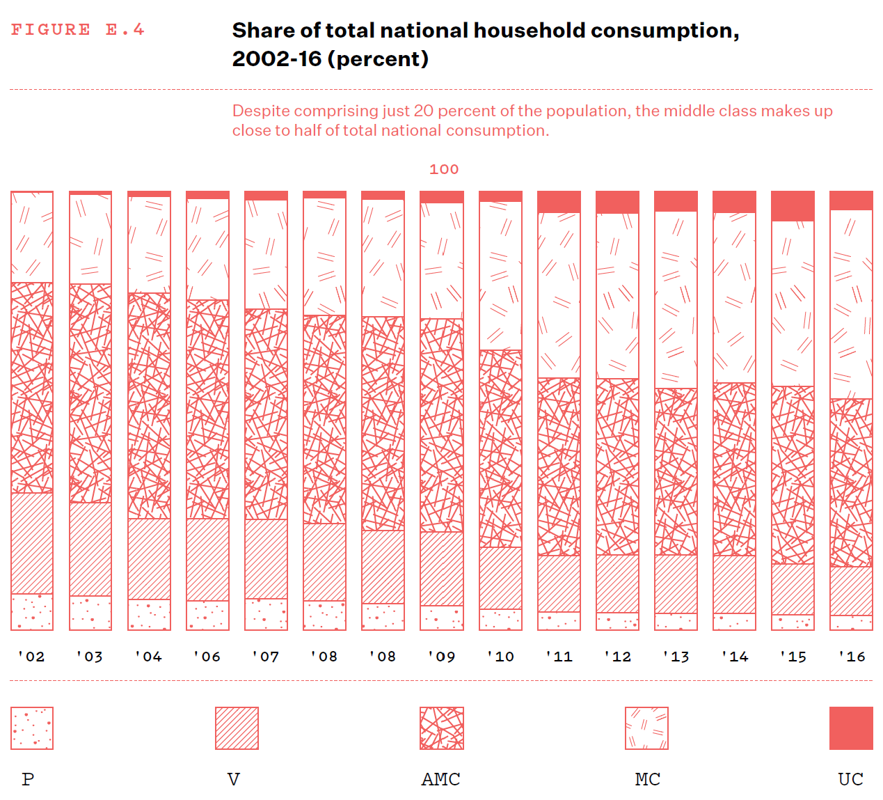 Most jobs come from wholesale/retail and manufacturing. Creating good jobs is the key for middle-class growth. Around half of middle class still work at low productivity services.