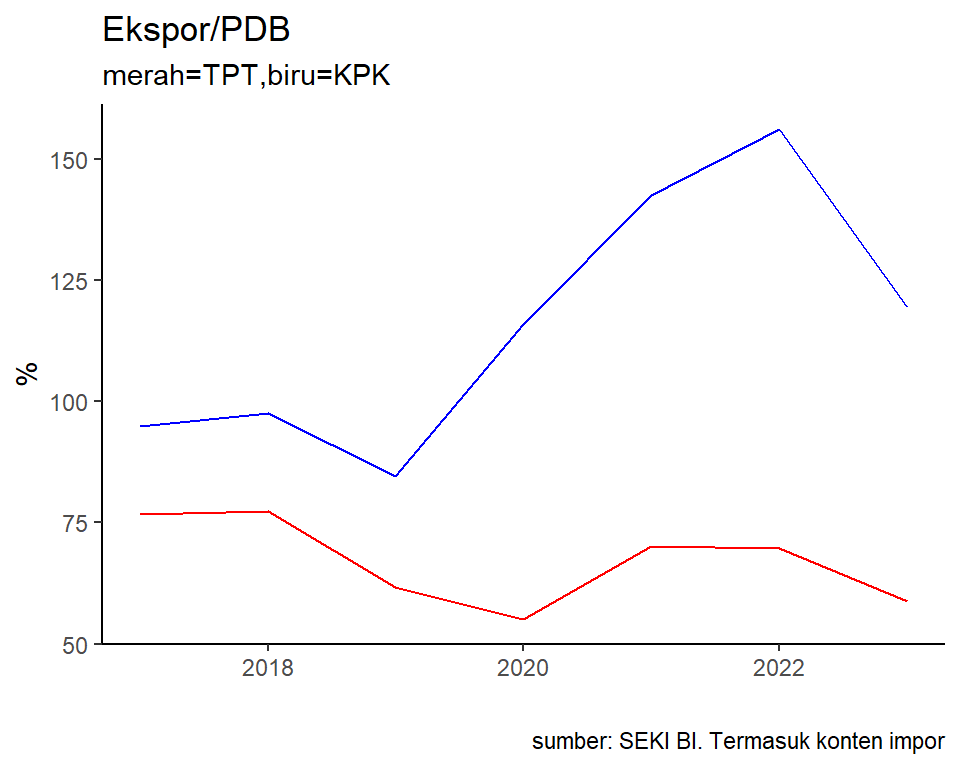 Ketergantungan permintaan global artinya industri TPT dan KPK bergantung pada: