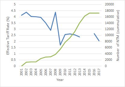 On the contrary, non-tariff measures rise.